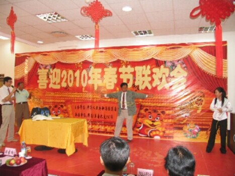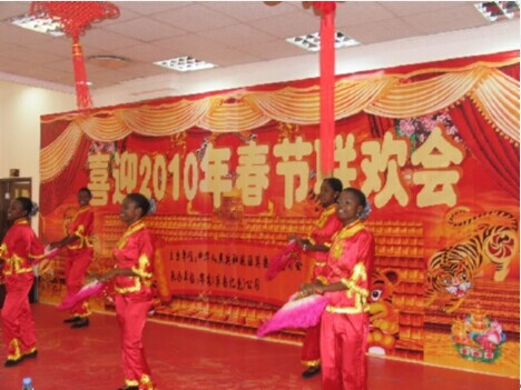 2010年2月11日當(dāng)?shù)貢r(shí)間下午5時(shí),我公司駐馬普托機(jī)場(chǎng)項(xiàng)目監(jiān)理組全體同事應(yīng)中華人民共和國(guó)駐莫桑比克商會(huì)、使館經(jīng)商處邀請(qǐng),參加華人華僑迎春聯(lián)歡活動(dòng),大家載歌載舞,共慶新春佳節(jié)。聯(lián)歡結(jié)束后,使館經(jīng)商處領(lǐng)導(dǎo)及全體參會(huì)人員共進(jìn)晚餐,氣氛熱鬧溫馨。聯(lián)歡期間,參贊代表中國(guó)政府對(duì)在外工作的華人華僑致以節(jié)日問候,祝大家春節(jié)快樂。
