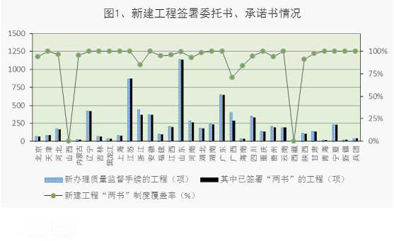 2015年2月,全國(guó)新辦理質(zhì)量監(jiān)督手續(xù)的工程共7302項(xiàng),其中已簽署法定代表人授權(quán)書、工程質(zhì)量終身責(zé)任承諾書的工程有7023項(xiàng),覆蓋率達(dá)96.18%,較1月份上漲約8個(gè)百分點(diǎn),江蘇、廣東、遼寧等14個(gè)省、自治區(qū)、直轄市和新疆生產(chǎn)建設(shè)兵團(tuán)覆蓋率達(dá)100%。此外,全國(guó)共有15370項(xiàng)已經(jīng)開工、正在建設(shè)的工程補(bǔ)簽了法定代表人授權(quán)書和工程質(zhì)量終身責(zé)任承諾書。