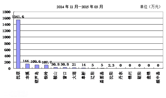 3.從罰款的金額看,撫順處罰力度最大,平均每月處罰額度在300萬元以上;本溪、葫蘆島、鐵嶺平均每月20萬元以上;丹東、錦州、朝陽、盤錦、綏中至今沒有實施處罰。