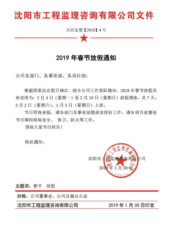 關于2019年春節(jié)放假的通知