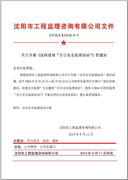 關(guān)于開展《沈陽監(jiān)理“百日安全監(jiān)理活動(dòng)”》的通知