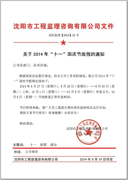 關(guān)于2014年“十一”國(guó)慶節(jié)放假的通知