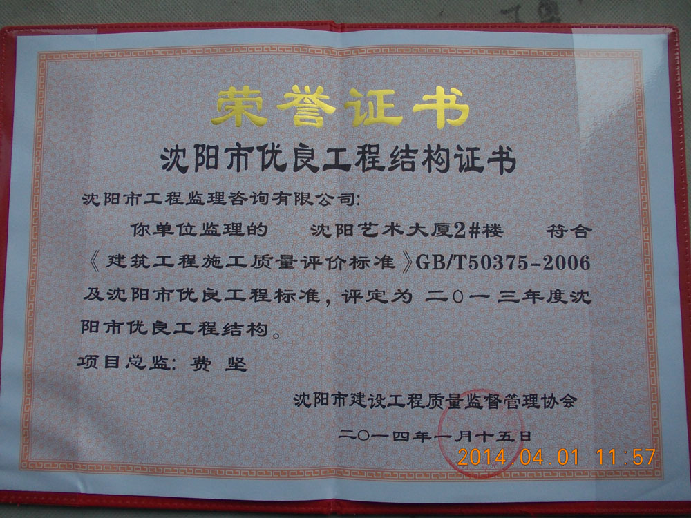 2#樓被評(píng)為“二零一三年度沈陽(yáng)市優(yōu)良工程結(jié)構(gòu)”