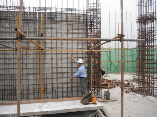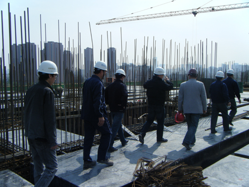9、 場地概況:本工程場地設(shè)計在腫瘤醫(yī)院院區(qū)內(nèi)(小河沿路),南側(cè)緊臨小河沿路,并且有高壓線、變壓器,北側(cè)為腫瘤醫(yī)院治療室,東側(cè)為院區(qū)核醫(yī)學(xué)室,西側(cè)緊臨院區(qū)內(nèi)就診人員主要通道,本工程場地地勢南低北高(北側(cè)室內(nèi)外高差0.3m,南側(cè)室內(nèi)外高差0.9m),四周供施工可用場地十分有限,對標(biāo)準(zhǔn)化組織施工十分不利。