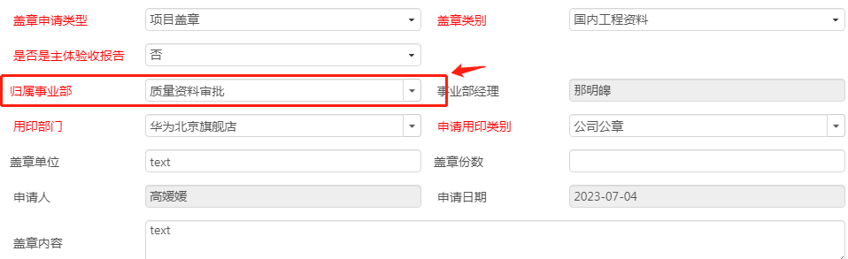 2、蓋章申請(增強(qiáng)專業(yè)審批,新增安全、質(zhì)量類資料審批,如圖2所示)