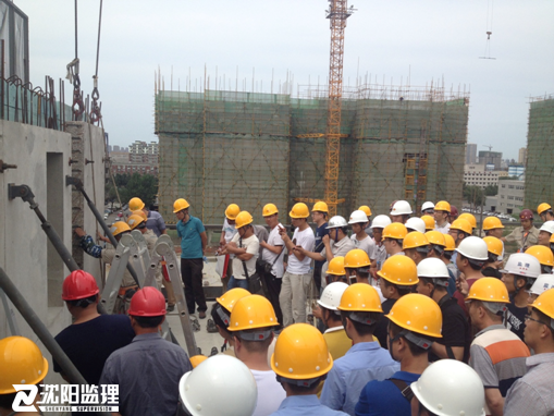 2015716日,由沈陽市建委以及沈陽市產(chǎn)業(yè)辦牽頭,組織金地、華潤(rùn)、保利等知名開發(fā)公司與施工單位、監(jiān)理單位共計(jì)70余人蒞臨我公司監(jiān)理的萬科金域華府項(xiàng)目參觀學(xué)習(xí)工業(yè)化吊裝流程和吊裝施工技術(shù)。
